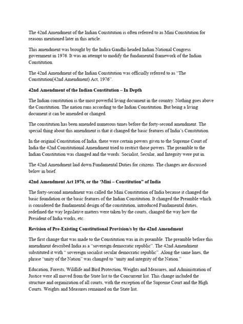 The 42nd Constitutional Amendment is one of the most debated and transformative amendments to the Indian Constitution. Guys, if you’re looking to understand the details, impacts, and perhaps even grab a PDF version for your study, you’ve come to the right place. Let’s dive deep into what makes this amendment so significant!