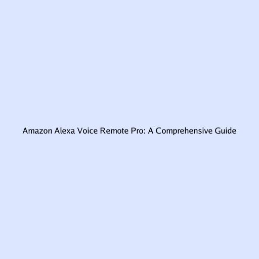 Amazon Alexa Voice Remote Pro: A Comprehensive Guide