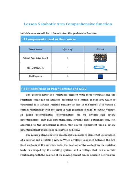 • Potentiometers or Joysticks (Optional): These can be used to control the arm manually. Potentiometers allow you to adjust the joint angles by turning a knob, while joysticks provide a more intuitive way to control the arm’s movements.