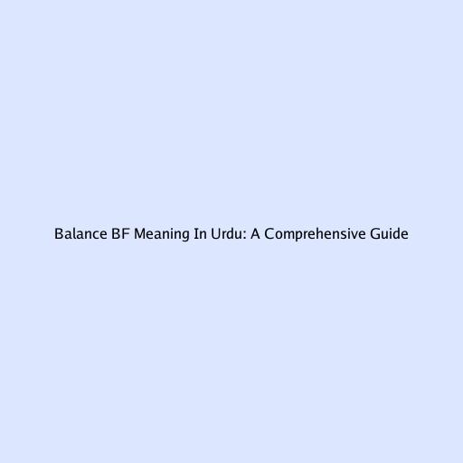 Balance BF Meaning In Urdu: A Comprehensive Guide