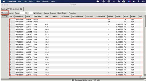 6. Enter Frequencies and Settings: This is where the magic happens! In the CHIRP software, you’ll see a spreadsheet-like interface. Each row represents a channel. Here’s what you need to fill in: