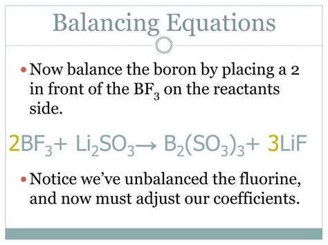 Alright, let’s get down to business and balance the equation BF3 Li2SO3 B2 SO3 3 LiF . We’ll start by writing down the unbalanced equation and then systematically count the atoms on each side. It’s like a detective mission where we need to find out how many of each ‘character’ (atom) are present and ensure they match up. Our unbalanced equation is: