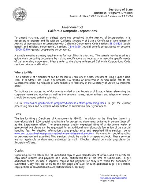 Okay, ready to roll up your sleeves and get this done? Filing a California Certificate of Amendment might seem daunting, but it’s a pretty straightforward process if you break it down. First things first, determine what needs amending . As we discussed, this could be your name, purpose, share structure, etc. Make sure you’ve identified the exact section(s) of your original Articles of Incorporation that need updating. Next up, gather necessary approvals . This is a critical internal step. Most amendments require approval from the board of directors, and some, like changes to share structure or fundamental changes to the purpose, often require shareholder approval as well. Check your corporation’s bylaws and California corporate law to understand the specific voting requirements for your particular amendment. Document these approvals meticulously – you’ll need copies of the board resolutions and shareholder meeting minutes. Once you have the approvals and know exactly what changes you’re making, it’s time to prepare the Certificate of Amendment form . You can usually find a template or the specific form on the California Secretary of State’s website. Fill it out completely and accurately, including the current corporate name, the date of filing the original Articles, the specific sections being amended, and the new wording. Ensure it’s signed by an authorized officer. Then comes the filing itself. You’ll need to submit the completed Certificate of Amendment to the California Secretary of State . You can typically do this by mail or in person. There’s a filing fee associated with this, so be sure to check the current fee schedule on the Secretary of State’s website and include the correct amount with your submission. They also offer expedited processing for an additional fee if you’re in a real hurry. After submission, the Secretary of State will review your document. If everything is in order, they will officially file it, making your amendment legally effective. It’s a good idea to request a certified copy of the filed amendment for your corporate records. This serves as official proof that the changes have been legally recognized. Keep this certified copy with your other important corporate documents! And that’s pretty much it, guys. Follow these steps, and you’ll have your California Certificate of Amendment filed correctly.