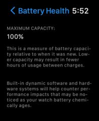 • 100%: If your battery health is still at 100%, that’s fantastic ! It means your battery is performing just like it did when you first bought the watch. You’re getting the maximum amount of charge it’s designed to hold.