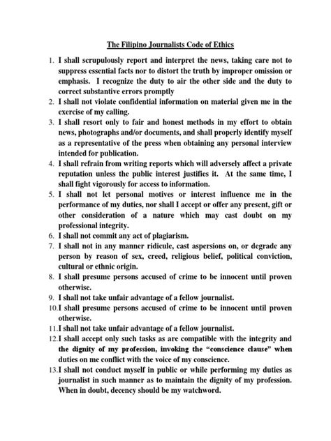 Code Of Ethics For Filipino Journalists
