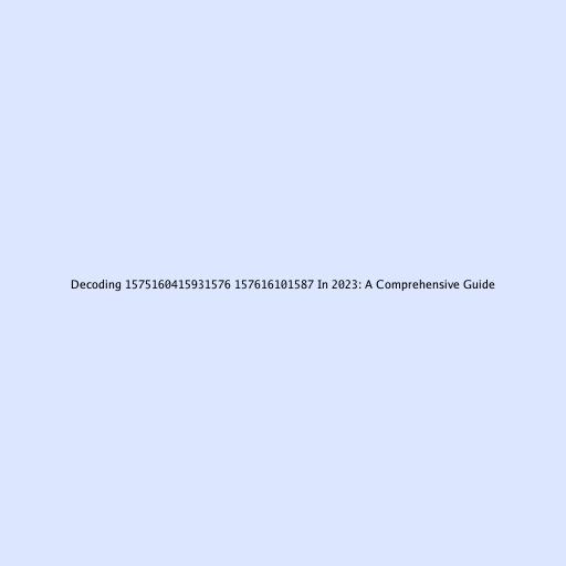 Decoding 1575160415931576 157616101587 in 2023: A Comprehensive Guide