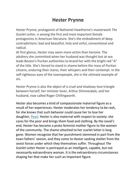 When we talk about Hester Prynne’s pivotal statement in Chapter 3 of *The Scarlet Letter *, we’re really honing in on her defiant refusal to name the father of her child, Pearl. This moment is triggered by the relentless pressure from the town’s religious and civic leaders. Reverend John Wilson first prompts her, saying, “Speak, woman, I charge thee! If thou hadst any hope of heaven’s grace, — then, as a good Christian woman, give, at once, thy fellow-sinner his right to acknowledge thee, and to part the burden with thee!” But it’s Reverend Arthur Dimmesdale, the young, eloquent minister, who then steps forward, his voice trembling with a concealed anguish, and urges her even more passionately: “ Hester Prynne , I charge thee to speak out the name of thy fellow-sinner! Be not silent from any mistaken pity and tenderness for him; for, believe me, Hester, though he were to step down from a high place, and stand here beside thee, on thy pedestal of shame, yet would thy bitterest agony be sweet, didst thou make manifest the whole truth, and relieve thy conscience!” He emphasizes the idea of relieving her conscience , subtly projecting his own torment onto her, a deeply ironic twist that many readers pick up on. It’s at this point, faced with the man she loves imploring her to expose him (though he speaks hypothetically), that Hester delivers her powerful retort. She cries out, “Never!” Her voice is described as being almost unnaturally strong, given her situation. She continues, “It is my child , it is my naughtiness that I will keep from the world! And let the shame be mine — for it hath been mine already — and all the world shall know that I bear the burden of it alone!” Her words are a complex tapestry of emotions, asserting her agency even in extreme duress. She also adds, in a moment of raw, unyielding love and defiance, “I will not speak! And my child must seek a father in heaven; she shall never know an earthly one!” This is the heart of her statement, guys. It’s not just a simple refusal; it’s a commitment to protect the father of her child, even at great personal cost, and a declaration of her solitary burden. It highlights her profound sense of loyalty and her fierce, almost primal, love for Pearl. This choice, made under such severe public scrutiny, reveals a deep inner strength that runs counter to the expected subservience of a Puritan woman. It solidifies her character as someone who, despite being branded a sinner, possesses an unwavering moral core, making her a truly compelling figure in American literature. This act of protecting the father, even while suffering publicly for his sin, is the ultimate sacrifice, emphasizing her selflessness and the intense privacy she wishes to maintain around her deeply personal transgression, an act that reverberates through the entire narrative.