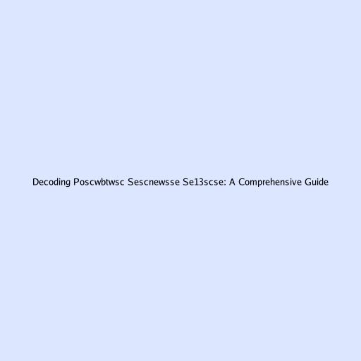 Decoding Poscwbtwsc Sescnewsse Se13scse: A Comprehensive Guide