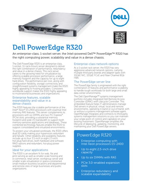 The Dell R320 is a single-socket rack server designed to deliver substantial computing power in a compact form factor. Its 1U design makes it an excellent choice where space is at a premium, such as in data centers or small office environments. The server is built to handle various workloads, including web hosting, virtualization, and application serving. It’s important to understand its capabilities and limitations to effectively deploy and manage it.