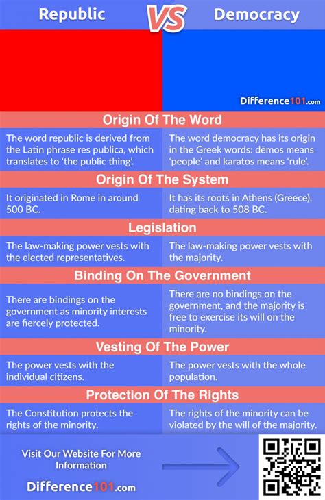 So, we’ve covered the basics of both. Now, let’s zoom in on the key differences between a democracy and a republic . The biggest distinction often boils down to how decisions are made and how rights are protected . In a pure democracy , the majority rules, plain and simple. If 51% of the people want something, that’s generally what happens. This can be great for the majority, but it can be pretty risky for minorities who might have their rights overlooked or even trampled. Think about it – if the majority decides they don’t like a certain group of people, they could potentially vote to strip them of their rights. It’s a potential pitfall of unchecked majority power. On the other hand, a republic emphasizes the rule of law and the protection of individual rights , often through a constitution. While a republic is typically democratic in its elections (meaning people elect their leaders), it’s not necessarily a pure democracy. The system is designed with checks and balances to prevent any one group, including the majority, from becoming too powerful or infringing on the fundamental rights of others. So, you elect representatives, but those representatives are bound by laws and a constitution that protects everyone. The United States, for example, is a constitutional republic with democratic principles. It’s not a pure democracy because the Constitution limits the power of the majority and protects individual liberties. It’s a system designed to ensure that liberty and justice prevail , not just for the majority, but for all citizens. This structural difference is crucial: democracy focuses on the will of the people (often the majority), while a republic focuses on the rule of law and the protection of rights , even from the majority. It’s about creating a government that is both responsive to the people and restrained by law, ensuring a stable and just society for everyone. This nuanced approach aims to balance popular sovereignty with the preservation of fundamental freedoms and legal protections, creating a more resilient and equitable form of governance. The framework of a republic is built to withstand the winds of popular opinion by anchoring the nation in enduring legal principles and individual rights.