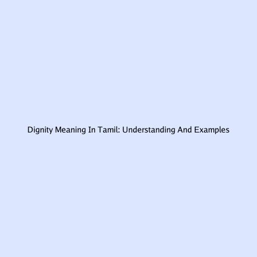 Dignity Meaning In Tamil: Understanding And Examples
