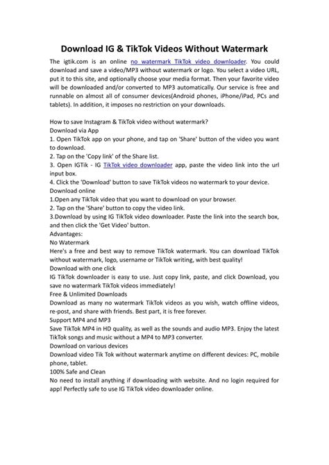 Alright, guys, let’s get down to the nitty-gritty! You’ve decided you want those watermark-free IG videos, and now you need the ‘how-to’. Luckily, it’s not rocket science, and there are several methods you can use. We’ll break them down so you can pick the one that works best for you. The most common and easiest method involves using third-party online downloaders . These are websites specifically designed to take an Instagram video link and give you a clean download. Here’s the general process: Step 1: Find the video you want to download on Instagram . Open your Instagram app or go to the website and locate the video. Step 2: Copy the video’s URL (link) . On mobile, tap the three dots (•••) icon above the post and select ‘Copy Link’. On desktop, you can usually just copy the URL from your browser’s address bar. Step 3: Go to an online Instagram video downloader website . There are tons of these out there. Some popular ones include SnapSave, SaveFrom.net, iGram, and others. Just do a quick search for “Instagram video downloader no watermark” and you’ll find plenty. Step 4: Paste the copied URL into the downloader’s input field . You’ll see a box where you’re supposed to paste the link. Do that! Step 5: Click the ‘Download’ or ‘Go’ button . The website will then process the link. Step 6: Choose your download option . Most sites will offer different qualities (e.g., SD, HD) and often give you the option to download without a watermark. Select the appropriate one and click the final download button. Step 7: Save the video file to your device . Your browser will then prompt you to save the MP4 file. And boom! You’ve got your watermark-free video. Another method is using browser extensions . Similar to online downloaders, these extensions integrate directly into your browser. Once installed, you’ll often see a download button directly on the Instagram page when a video is playing. This can be even more convenient! You typically install the extension, visit the Instagram video, and click the provided download button. For the more tech-savvy folks, there are also desktop applications or even command-line tools . These might offer more advanced features or batch downloading capabilities, but they generally require a bit more setup. However, for most users, the online downloader websites are the quickest and most straightforward solution. Important Considerations : Always ensure you’re using a reputable downloader site. Some less scrupulous sites might bombard you with ads or even try to trick you into downloading malware. Stick to well-known ones, and be cautious about what you click. Also, remember that downloading copyrighted content without permission might violate Instagram’s terms of service and copyright laws. Use these tools responsibly and ethically, respecting the rights of the original creators. We’re just here to show you how to get a clean copy for personal enjoyment or legitimate use cases. So, go ahead, give it a try, and start saving those awesome videos!