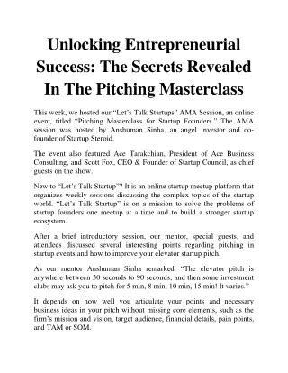 Entrepreneurial Success Secrets Revealed
