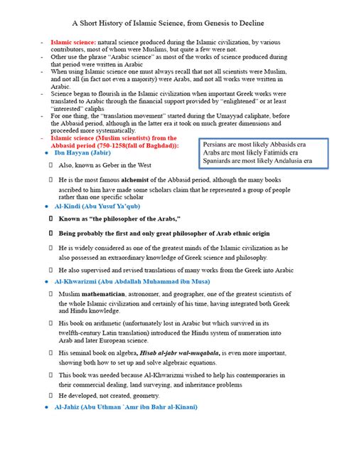 Alright, let’s set the stage. The Islamic Golden Age , which peaked roughly from the 8th to the 13th centuries, was a time of unprecedented intellectual flourishing. Picture bustling libraries, observatories reaching for the stars, and brilliant minds debating the nature of the universe. This era saw incredible advancements in a wide range of fields. Mathematicians like Al-Khwarizmi, who gave us algebra, revolutionized the way we solve problems. In astronomy, scholars meticulously mapped the heavens, improving upon ancient knowledge and developing new instruments for observation. Think of the astrolabe – a device that helped navigate and tell time! Then there’s medicine, where figures like Avicenna (Ibn Sina) wrote the Canon of Medicine , a comprehensive medical encyclopedia that was used for centuries. Islamic scientists were not just translators; they were innovators. They built upon the knowledge they inherited, critically examining and expanding upon it. They valued observation, experimentation, and the pursuit of knowledge for its own sake. They weren’t afraid to challenge existing ideas and were open to learning from different cultures. This spirit of inquiry led to groundbreaking discoveries and inventions that shaped the scientific landscape. They developed sophisticated systems of measurement, improved surgical techniques, and made significant contributions to our understanding of optics and chemistry. The Golden Age of Islamic Science wasn’t just a collection of discoveries; it was a testament to the power of intellectual curiosity, cultural exchange, and the pursuit of knowledge. It created a legacy of scientific achievements and intellectual curiosity that has endured throughout history and continues to influence the world. The impact of Islamic science extends beyond specific discoveries; it reflects a broader commitment to scholarship, critical thinking, and a holistic approach to understanding the world around us.
