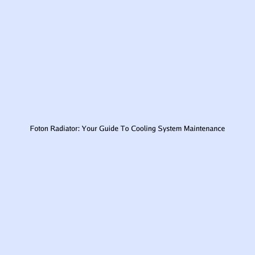 - Radiator Maintenance Tips for Your Foton: Keep it Cool!