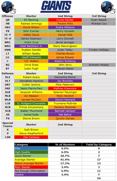Hey everyone, let’s take a trip down memory lane and dive deep into the New York Giants 2014 depth chart . Man, 2014 feels like a while ago, doesn’t it? But understanding the roster from that year is super important for context, especially when we think about the team’s performance and the foundations laid for future seasons. We’ll break down the key positions, highlight some standout players who were making waves back then, and generally get a feel for what made that Giants team tick. So, grab your favorite snacks, settle in, and let’s talk some Giants football!