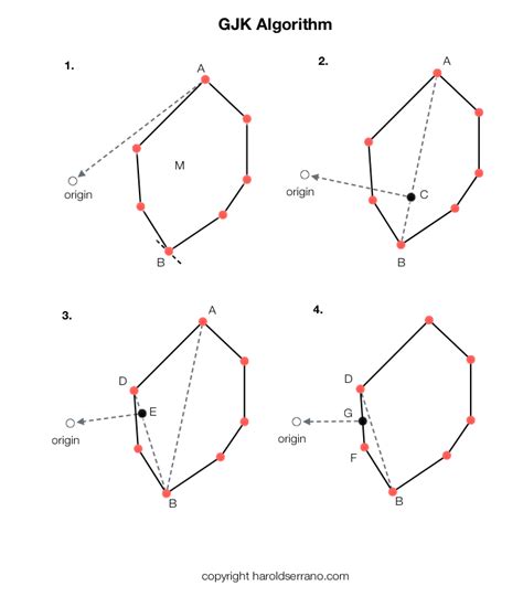 Now, how do we efficiently check if the origin is inside this Minkowski Difference without actually constructing the entire Minkowski Difference shape, which could be computationally expensive for complex geometries? Enter the Support Function ! This is where GJK really shines. The support function for a convex shape, given a direction vector, returns the point on that shape that is furthest in that given direction. Think of it like shining a spotlight in a certain direction onto an object; the support function tells you where the object’s surface would reflect the light from that particular angle. For the Minkowski Difference, finding its support point in a given direction d is incredibly easy: it’s simply the support point of Shape A in direction d minus the support point of Shape B in the opposite direction -d . Mathematically, Support_A-B(d) = Support_A(d) - Support_B(-d) . This is a fantastic optimization! It means GJK never needs to explicitly build the entire Minkowski Difference. Instead, it only needs to query the support functions of the original shapes, A and B, which are usually much simpler operations. This ability to work with just the support functions, rather than the full geometry, is what makes GJK so efficient and powerful. It allows the algorithm to handle incredibly complex convex shapes without getting bogged down in their internal structure, making it a cornerstone for fast and reliable collision detection in interactive applications. By leveraging these two powerful mathematical ideas, the Minkowski Difference and the Support Function, GJK elegantly transforms a seemingly complex collision problem into a much simpler geometric containment test, all without needing to generate vast amounts of intermediate data. It truly is a testament to clever computational geometry, giving developers a robust tool for ensuring realistic interactions in their digital worlds, keeping performance snappy and user experience smooth. Pretty neat, huh?