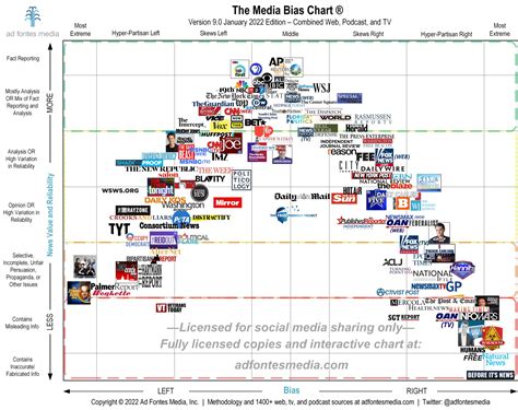 Now, this is where things get really interesting, and honestly, super critical: media reliability . Hasan’s Media Bias Chart doesn’t just tell you if a source is liberal or conservative; it dives into how trustworthy their reporting actually is. Think about it: you can have a news outlet that leans heavily left or right, but if they are diligently fact-checking, providing evidence, and correcting errors, they can still be a valuable source of information. Conversely, you can have an outlet that claims to be neutral, but if they’re constantly spreading fake news, using sensationalist headlines, or engaging in outright propaganda, they are incredibly unreliable and, frankly, dangerous. The chart grades sources on their factual reporting. This means they look at things like the accuracy of their claims, whether they cite credible sources, how often they issue corrections when they get something wrong, and if they engage in what’s called