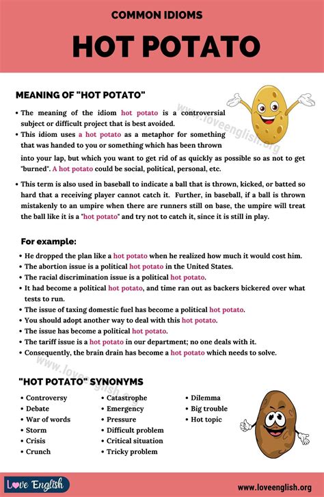 Hey guys! Ever heard someone say a situation is like a “hot potato”? What on earth does that even mean? Well, buckle up, because we’re diving deep into this super common English idiom. Understanding idioms like “hot potato” is seriously key to mastering the English language, whether you’re a native speaker or learning the ropes. It’s not just about knowing the words; it’s about getting the vibe, the cultural context, and how people actually talk. So, let’s unwrap this quirky phrase and see what makes it tick!