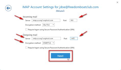 • Incoming Port: 993 (with SSL enabled)