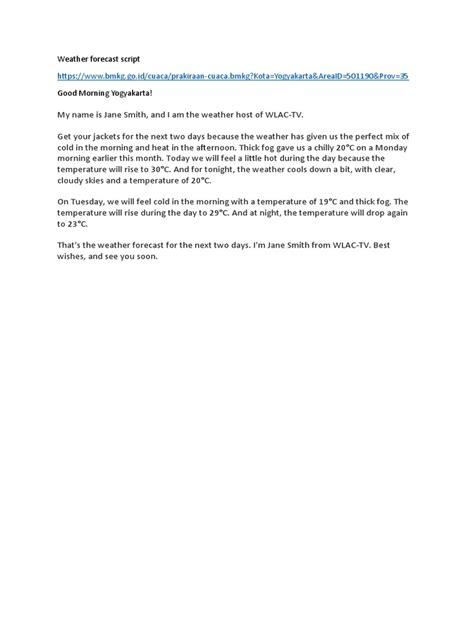 Okay, guys, let’s talk about how the weather forecast script works hand-in-hand with what you actually see on your screen. They are literally inseparable! A scriptwriter doesn’t just write words; they write words that are meant to be illustrated . Imagine the presenter pointing to a map, and the script says, “Here in the west, we’re seeing a large area of low pressure, bringing cloud and rain.” The script provides the narration, and the graphics team provides the visual representation of that “large area of low pressure.” It’s a choreographed dance between the words and the images. When the script mentions “temperatures climbing into the low 20s,” the graphics will show a color-coded map with those specific temperatures highlighted. If the script talks about “a strong cold front sweeping across the country,” the visuals will show a sharp line moving rapidly, often with associated weather symbols like rain or snow. The script guides the viewer’s eye . It tells you where to look on the map and what to pay attention to. Phrases like, “Notice this band of showers developing here,” or “As we move into tomorrow, see this area of high pressure building in from the Atlantic?” actively direct your attention to specific parts of the graphical display. This synergy is crucial for clarity. Without the script, the maps might be confusing. Without the maps, the script would be just a voice talking about things you can’t see. Effective weather forecasting relies heavily on this visual-verbal partnership . It’s why weather presenters often seem so natural – they are trained to seamlessly integrate their delivery with the on-screen graphics, making the complex look simple. So, next time you’re watching, pay attention to how the words on the script are brought to life by the dynamic visuals; it’s a sophisticated production designed for maximum impact and understanding.