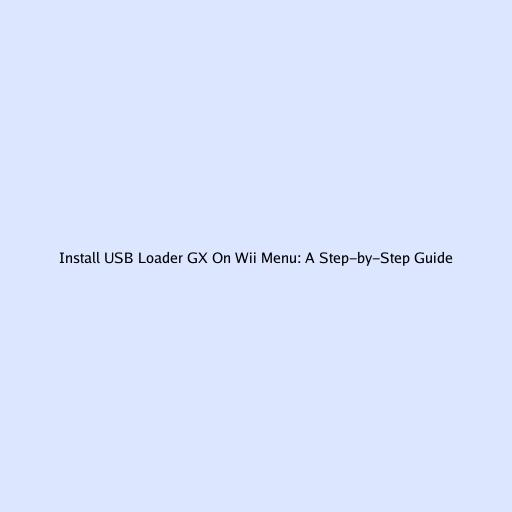 Install USB Loader GX on Wii Menu: A Step-by-Step Guide