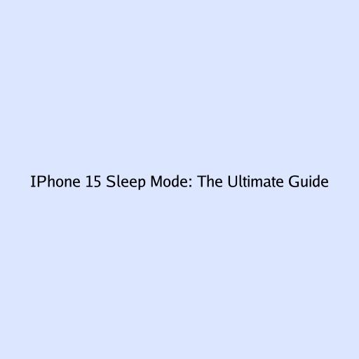 IPhone 15 Sleep Mode: The Ultimate Guide