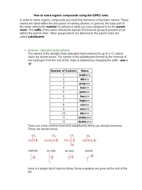 Alright, let’s dive into the core of IUPAC nomenclature and learn how to name some organic compounds. This is where it gets really fun! The procedure for naming organic compounds can be broken down into several steps. These steps guide you from identifying the core structure to naming the functional groups and substituents. The basic naming structure usually follows this format: [Prefixes] + [Parent Chain] + [Suffix] . Prefixes describe substituents or functional groups, the parent chain indicates the longest carbon chain, and the suffix indicates the primary functional group. Let’s start with alkanes, which are the simplest organic compounds, made up of just carbon and hydrogen atoms, linked by single bonds. First, identify the longest continuous carbon chain in the molecule; this becomes the parent chain. Use the number of carbon atoms in the chain to determine the base name (meth- for one carbon, eth- for two, prop- for three, and so on).