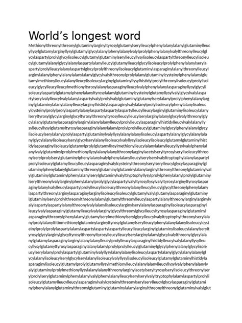 Let’s be real, nobody is going to memorize or pronounce this entire word. It’s essentially a list of the amino acids that make up the titin protein. Titin is a giant protein responsible for the passive elasticity of muscle. The name itself is constructed by stringing together the names of the various amino acids in the order they appear in the protein’s molecular structure. Each amino acid is represented by a specific prefix or root, and these are linked together to form the complete name. While technically a single word according to chemical nomenclature rules, it’s more accurately described as a systematic name rather than a word used in everyday language. This is why it often gets an asterisk in the “longest word” discussions.