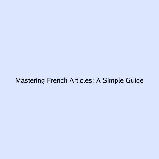 Mastering French Articles: A Simple Guide