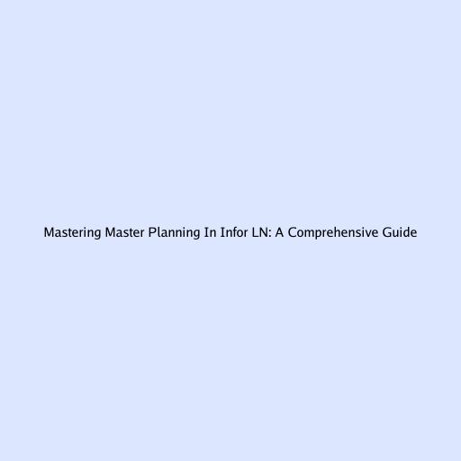 Mastering Master Planning In Infor LN: A Comprehensive Guide