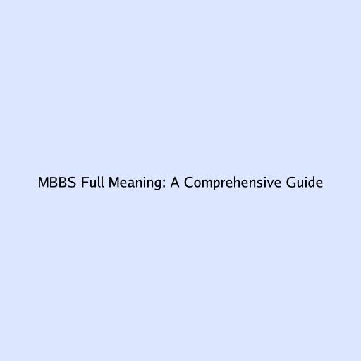 MBBS Full Meaning: A Comprehensive Guide