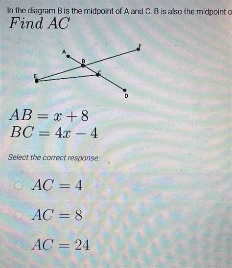 To wrap things up, the problem asking “If C is the midpoint of segment AB and AB = 20, what is AC?” is a fantastic illustration of how definitions drive mathematical solutions. Because we know C is the midpoint, we know it divides AB into two equal segments, AC and CB. Since the total length AB is 20, and AC + CB = AB with AC = CB, it logically follows that 2 * AC = 20. Solving for AC by dividing 20 by 2 gives us the answer: AC = 10 . It’s a neat and tidy solution that relies entirely on understanding the meaning of a midpoint. So next time you see a midpoint problem, remember this: it means equal halves! Keep practicing, keep exploring, and you’ll master these concepts in no time. Happy calculating, everyone!