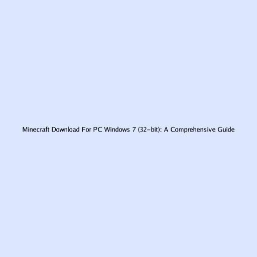 Minecraft Download for PC Windows 7 (32-bit): A Comprehensive Guide