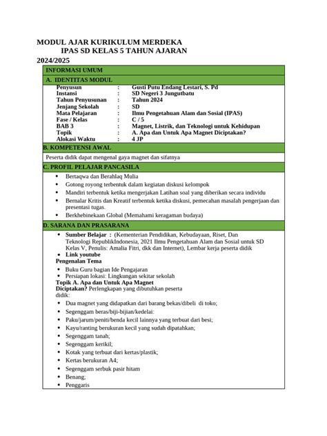 Hey guys! Kalian siap buat nyemplung ke dunia Ilmu Pengetahuan Alam dan Sosial (IPAS) yang seru banget di kelas 5 SD pake Kurikulum Merdeka? Nah, di sini kita bakal bahas tuntas soal Modul Ajar IPAS SD Kelas 5 Kurikulum Merdeka . Ini tuh kayak peta harta karun buat guru dan siswa biar pembelajaran jadi lebih asyik, relevan, dan pastinya nendang banget pemahamannya. Kurikulum Merdeka ini kan emang fokusnya bikin belajar jadi lebih bermakna, guys. Makanya, modul ajar ini didesain buat ngasih pengalaman belajar yang nggak cuma ngapalin, tapi beneran ngerasain dan ngerti. Yuk, kita bedah satu-satu apa aja sih yang bikin modul ajar IPAS kelas 5 ini spesial!