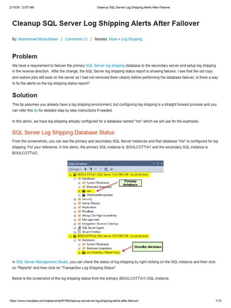 Finally, it’s important to regularly review the log shipping status, even if you haven’t received any alerts. This helps you identify potential issues before they become critical. You can schedule a recurring task to generate a log shipping status report and send it to the appropriate personnel. This ensures that someone is always keeping an eye on the health of your log shipping implementation. Consistency is key here! Regularly reviewing the log shipping status helps you maintain a proactive approach to disaster recovery and high availability.