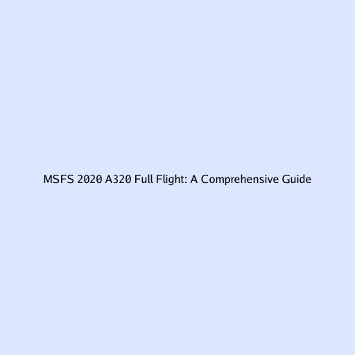 MSFS 2020 A320 Full Flight: A Comprehensive Guide