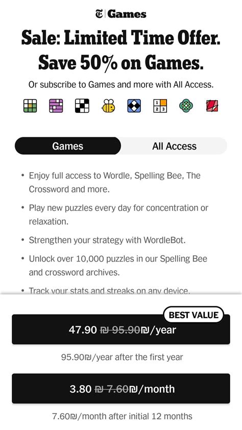 2. Consider Bundling: If you’re interested in multiple NYT products, such as Games, Cooking, or Wirecutter, consider bundling them together for a discounted rate. The All Access plan is a great way to get everything you want at a lower price.