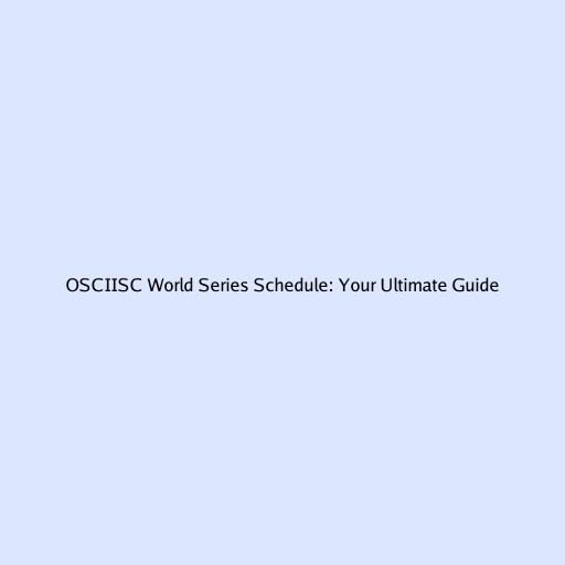 OSCIISC World Series Schedule: Your Ultimate Guide