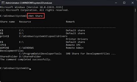 • net share <sharename> : To view the properties of an existing share, simply type net share followed by the share name. This will display information such as the path, permissions, and number of connections. Know your shares!