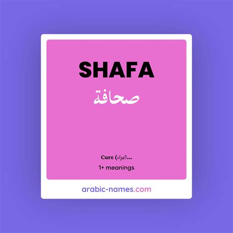 Moving on to Shafa, this name has a lovely, gentle sound to it. Shafa is actually a name with beautiful origins, primarily found in Arabic and Hebrew cultures. In Arabic, Shafa (شفاء) directly translates to “healing” or “recovery.” It carries connotations of well-being, health, and restoration. Imagine bestowing this name upon a child, with the hope that they bring healing and comfort to those around them. The name also reflects a sense of hope and renewal, perfect for a family that has overcome challenges or seeks a fresh start. In Hebrew, while the spelling might differ slightly, the essence remains similar, often linked to notions of peace and tranquility. The widespread use of Shafa across different cultures and regions speaks to its universal appeal. People from diverse backgrounds are drawn to its positive connotations and the sense of hope it embodies. The name’s simplicity and elegance also contribute to its popularity, making it easy to pronounce and remember. Beyond its literal meaning, Shafa can also be interpreted symbolically. It represents the power of healing, not just in a physical sense, but also emotionally and spiritually. Someone named Shafa might be seen as a source of comfort and support, someone who has the ability to mend broken hearts and soothe troubled minds. In many communities, names like Shafa are chosen with intention, reflecting the parents’ hopes and dreams for their child’s future. They want their child to embody the qualities associated with the name, becoming a beacon of healing and positivity in the world. So, when we encounter the name Shafa , we’re reminded of the importance of well-being, compassion, and the enduring human desire for healing and renewal. It’s a name that carries a profound message, resonating with people from all walks of life.