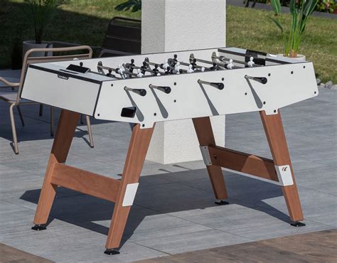 Next, the playing surface matters a lot. You want a surface that allows the ball to move smoothly and accurately. Look for tables with a smooth, even playing field, often made from coated wood or laminate materials. These surfaces are designed to minimize friction, allowing for fast-paced gameplay. The best outdoor tables often feature a sealed surface to prevent moisture from penetrating and damaging the material. The goal is to choose a surface that offers excellent ball control and responsiveness. Also consider the table’s dimensions. Measure your available space to make sure the table will fit comfortably, with enough room around it for players to move and maneuver. Standard table sizes vary, so choose one that fits your space and your playing style. Smaller tables are great for smaller spaces or younger players, while larger tables provide a more professional feel. Then comes the rods and handles. The rods should be made from durable materials like solid steel, and they should be rust-resistant. Check the handle design as well. Ergonomic handles that provide a comfortable grip are essential, as you’ll be spending a lot of time with your hands on them. Some tables even have counterbalanced players, which means the players stay in place when you let go of the rods. This feature can be a game-changer when it comes to controlling the ball and making quick shots. Finally, think about extra features. Some tables come with built-in cup holders, ball return systems, and even weather-resistant covers. These extras can enhance your overall playing experience and protect your table from the elements. A cover is a must-have if you plan to leave your table outside for extended periods.