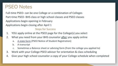 First off, PSEO can significantly reduce the time and cost required to complete your college degree. By earning credits early, you can potentially graduate sooner or take on additional minors or specializations without extending your college stay. This not only saves you money on tuition but also allows you to enter the workforce earlier, jumpstarting your career. Moreover, PSEO provides a unique opportunity to explore different subjects and disciplines before committing to a specific major. This is particularly valuable if you’re unsure about what you want to study, as it allows you to test the waters and discover your passions and interests. Imagine taking introductory courses in various fields – from Computer Science to Psychology – all while still in high school. This exploration can help you make a more informed decision about your major, saving you from the potential regret of switching majors later on, which can be both time-consuming and costly. Finally, PSEO can enhance your college application profile. Admissions committees often look favorably upon students who have taken the initiative to challenge themselves academically and pursue college-level coursework. Completing PSEO demonstrates your readiness for college and your ability to handle the demands of higher education. This can give you a competitive edge when applying to colleges and universities, increasing your chances of acceptance into your dream school.
