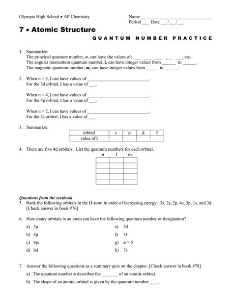 Quantum Numbers: Exercises To Master Atomic Structure