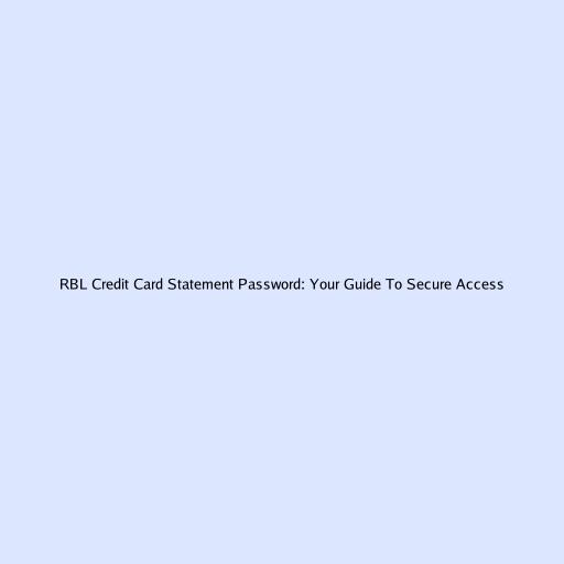 RBL Credit Card Statement Password: Your Guide to Secure Access