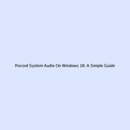 Record System Audio On Windows 10: A Simple Guide