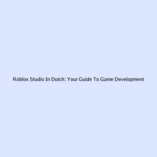 Roblox Studio in Dutch: Your Guide to Game Development