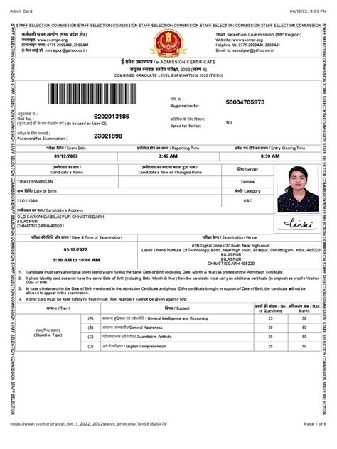 Printout of the Application Form : It’s always a good idea to have a printout of the SSC CGL application form you submitted.