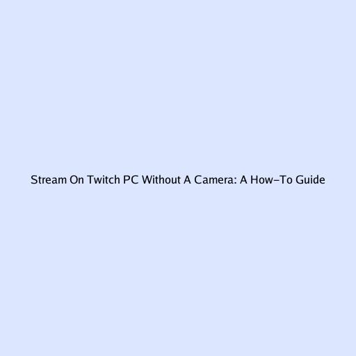 Stream On Twitch PC Without A Camera: A How-To Guide