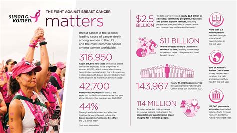 Alright guys, let’s break down what makes Susan G. Komen tick. It’s not just one thing; it’s a powerful trifecta of research , awareness , and support that forms the core of their mission. These three pillars work hand-in-hand to tackle breast cancer from every angle, ensuring that progress is made on all fronts. First up, research . This is where the magic happens, guys! Susan G. Komen is one of the largest non-governmental funders of breast cancer research in the world. They pour millions of dollars into grants for scientists and institutions that are pushing the boundaries of what we know about breast cancer. Think about it: these are the brilliant minds working on understanding the complex biology of the disease, developing more effective treatments, finding new ways to detect it earlier, and ultimately, working towards a cure. Their funding has been instrumental in many of the major breakthroughs we’ve seen in breast cancer over the years. From identifying new drug targets to improving surgical techniques and understanding the genetic factors involved, their investment in research is crucial for saving lives and improving the quality of life for those affected. It’s a long-term game, and their commitment to sustained funding ensures that promising research projects can continue without interruption. They focus on areas that have the greatest potential to make a difference, whether it’s tackling aggressive forms of breast cancer or addressing disparities in care. The impact of this research isn’t just theoretical; it translates directly into better care and more hopeful outcomes for patients. It’s about giving doctors and patients more options and better tools to fight the disease. The sheer volume of research they fund is staggering, and it’s a testament to their unwavering dedication to eradicating breast cancer. It’s not just about finding a cure, but also about making sure that existing treatments are as effective and tolerable as possible. The next pillar is awareness . This is huge, and it’s something you see everywhere, especially around events like the Race for the Cure. Susan G. Komen has done an incredible job of bringing breast cancer out of the shadows and into the spotlight. They’ve made it a topic that people feel comfortable talking about, and they’ve educated millions about the importance of early detection . Remember, early detection literally saves lives. The sooner breast cancer is found, the easier it is to treat, and the higher the chances of survival. Komen’s campaigns, public service announcements, and community outreach programs have been vital in encouraging people to get their regular screenings, know their bodies, and talk to their doctors. They’ve worked hard to demystify mammograms and other screening methods, making them less intimidating and more accessible. By raising public awareness, they empower individuals to take control of their breast health and to advocate for themselves. This focus on awareness also extends to understanding the risks associated with breast cancer and recognizing the signs and symptoms. It’s about equipping everyone with the knowledge they need to make informed decisions about their health. The visible pink ribbons, the educational materials, the stories shared – it all contributes to a culture where breast health is prioritized. This ongoing effort ensures that breast cancer remains a prominent issue, deserving of attention and resources. Finally, we have support . Fighting breast cancer isn’t just about the medical side of things; it’s also about the emotional and practical journey that patients and their families go through. Susan G. Komen provides a lifeline for many by offering a range of support services. This can include financial assistance to help with treatment costs, navigation programs to guide patients through the complex healthcare system, and access to information and resources that can ease their burden. They connect people with support groups, offer counseling services, and provide educational materials tailored to different stages of the disease. For someone who has just received a diagnosis, or who is struggling with treatment side effects, this support can be absolutely invaluable. It provides comfort, reduces stress, and helps individuals feel less alone in their fight. The organization recognizes that a holistic approach is needed, addressing not only the physical aspects of the disease but also the psychological and social impact it has on individuals and their families. Their commitment to supporting the breast cancer community extends to survivors as well, offering resources and programs that help them navigate life after treatment and cope with long-term effects. These support networks are crucial for fostering resilience and promoting well-being throughout the entire cancer journey. So, when you see Susan G. Komen in action, remember these three core elements: funding groundbreaking research , raising vital awareness , and providing essential support . It’s this comprehensive strategy that makes them such a powerful force in the fight against breast cancer. They are truly committed to making a difference in every possible way, from the lab to the bedside and beyond. The synergy between these three pillars is what makes their impact so profound and far-reaching, ensuring that no one fighting breast cancer has to do it alone.